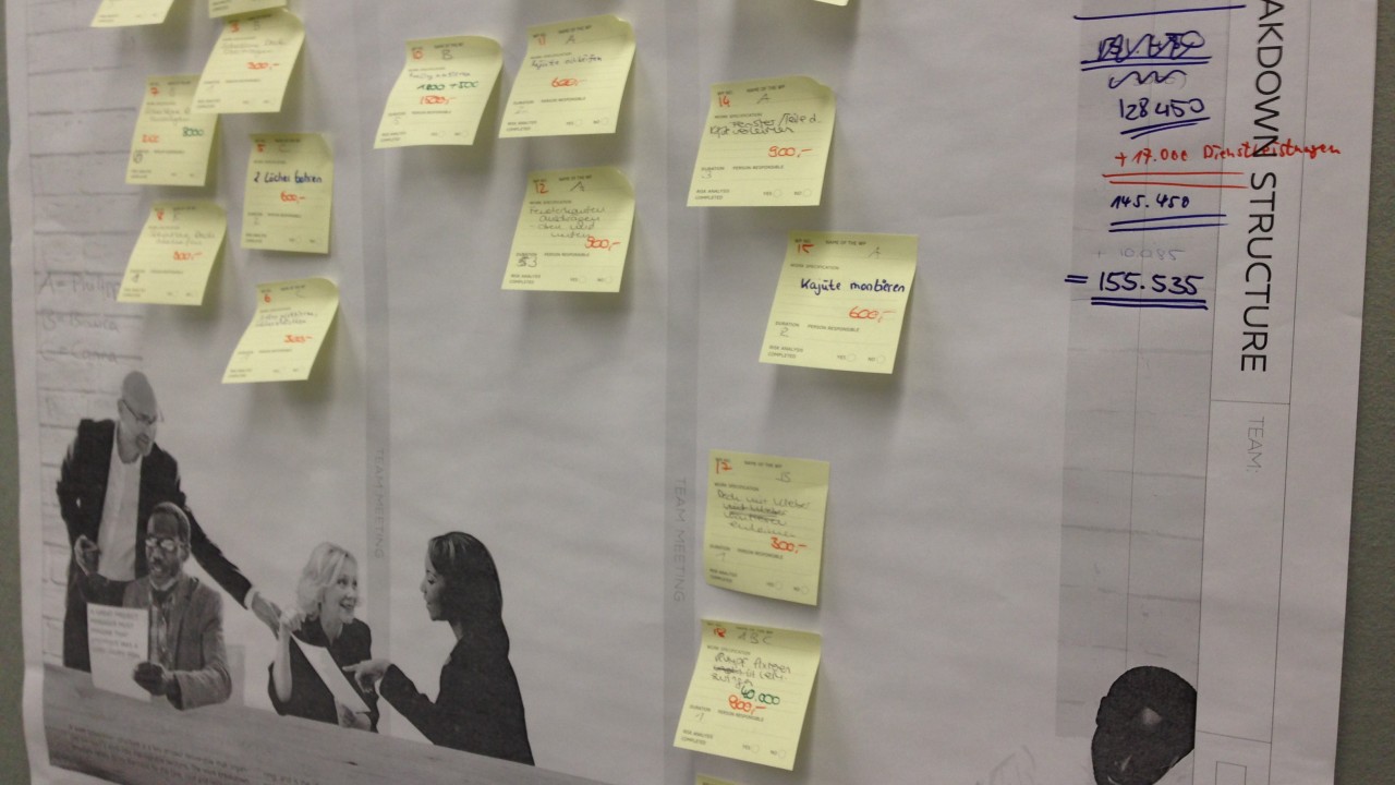 Die HBS Berlin Methode für Projektmanagement besteht aus vier großen Postern, die am Projektanfang leer im Seminarraum hängen. Für jede Hauptphase des Projektmanagements gibt es ein eigenes Poster: 1) Startphase mit Projektzielen und Projektbeschreibung 2) Projektstrukturplan 3) Risiko-Analyse anhand der einzelnen Arbeitspakete und 4) Gantt-Diagramm und Projekt-Controlling. Am Ende des Seminars wurden alle Poster Schritt für Schritt ausgefüllt und können im Nachgang bewertet werden.